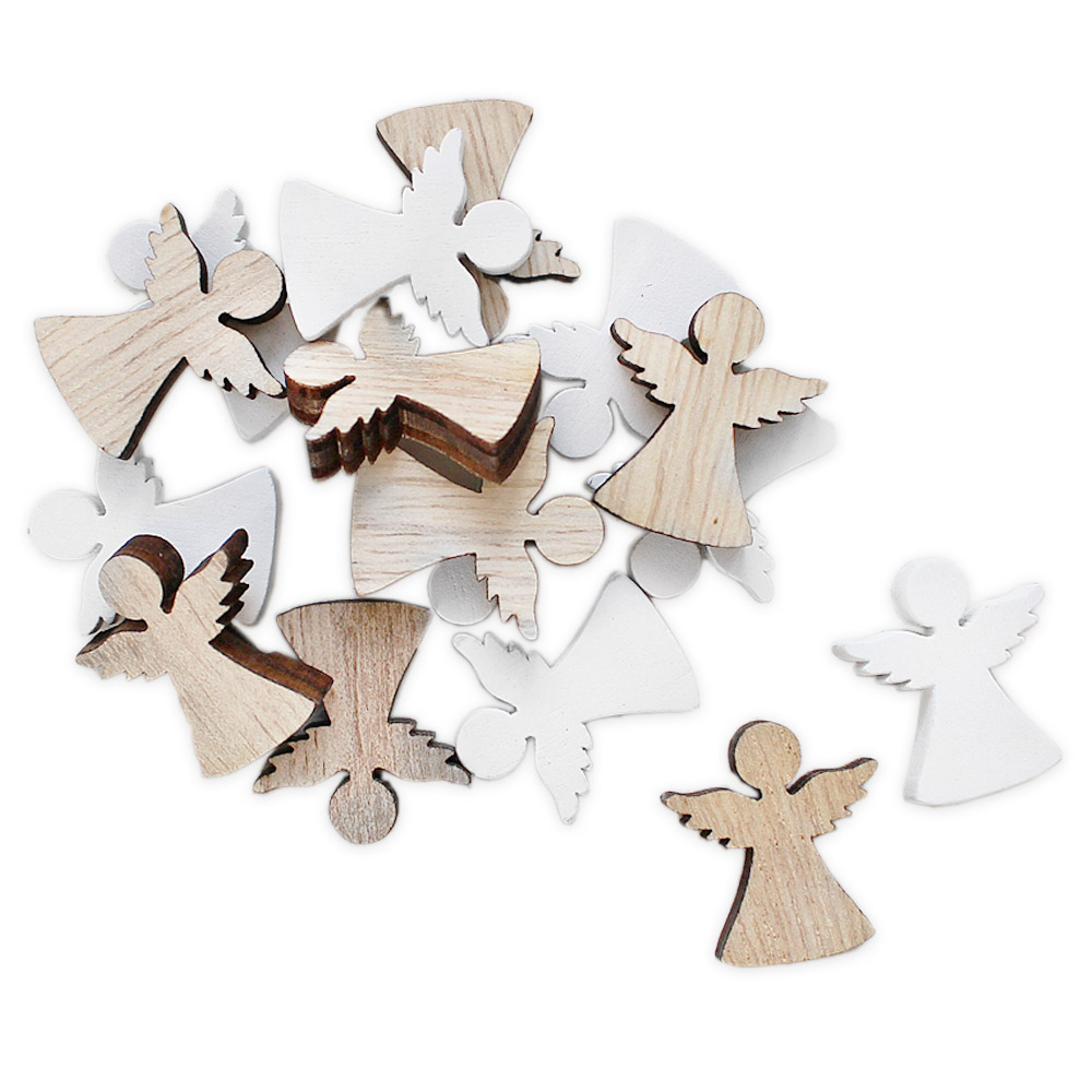 Anděl přízdoba dřevo 36ks/2cm bílá/natur