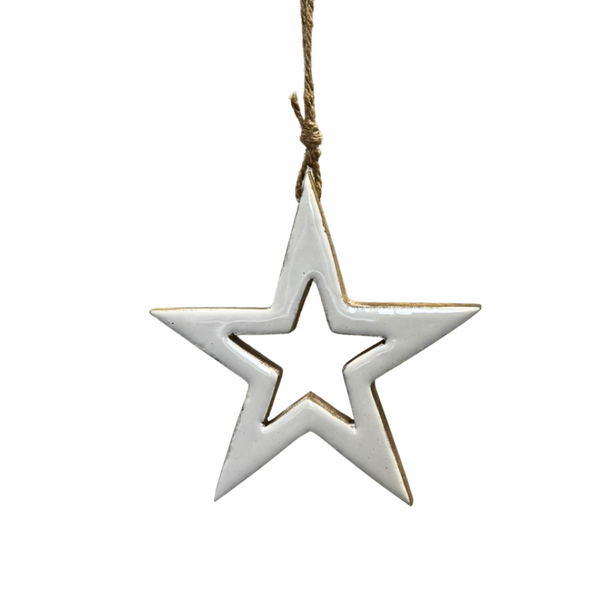Hvězda dřevo závěs pr.14,5x1,5cm třpyt glazura