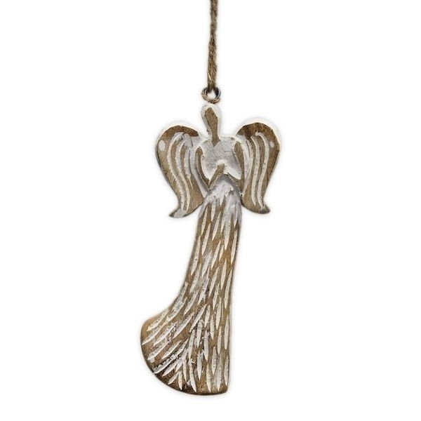 Anděl dřevo závěs v.16x6,5cm bílá patina