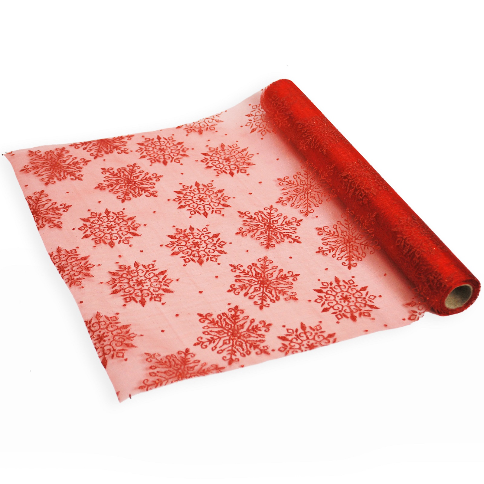 DEKO organza vánoční Vločka š.36cm/5m červená