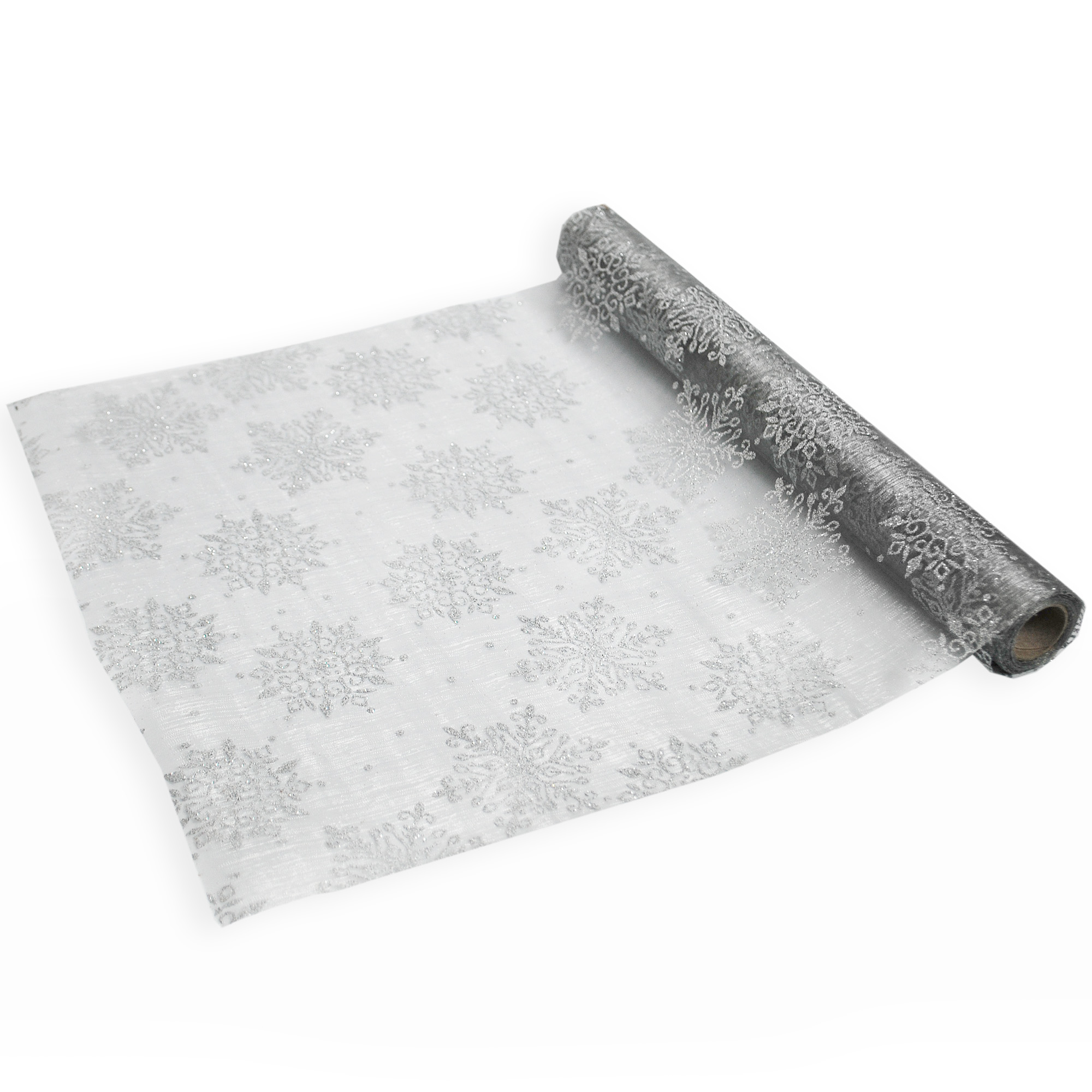DEKO organza vánoční Vločka š.36cm/5m stříbrná
