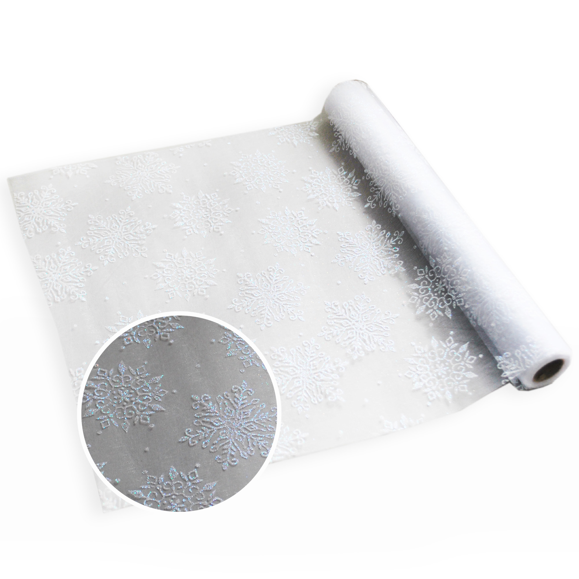 DEKO organza oboustranná Vločky š.36cm/5m krém, zlatá-stříbrná