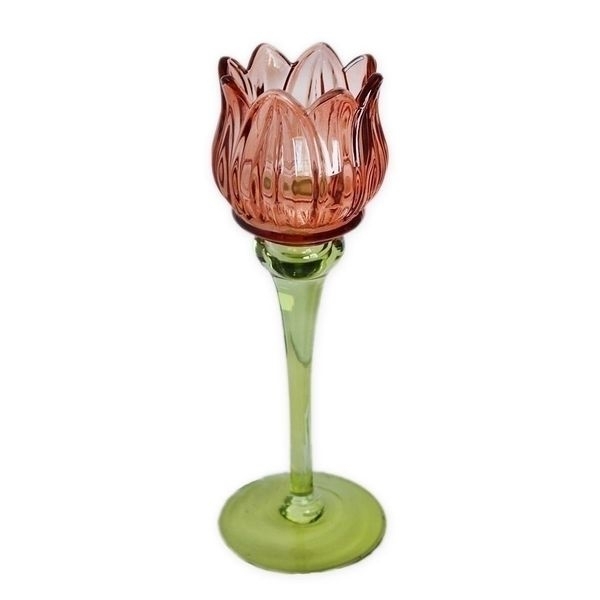 Sklo svícen květ v.7,5cm růžový