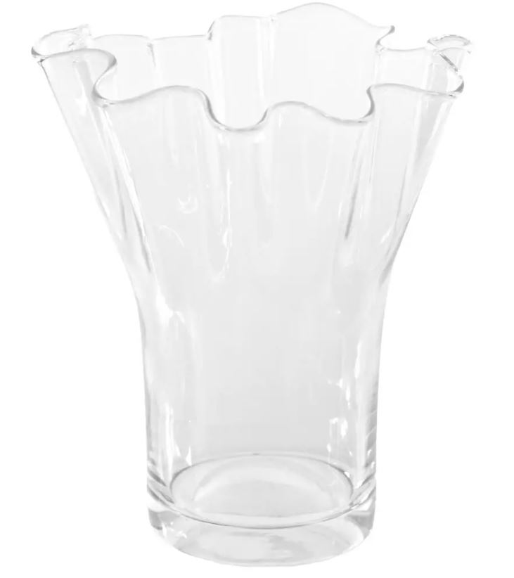 Sklo váza zvlněný okraj pr.22V30cm čirá