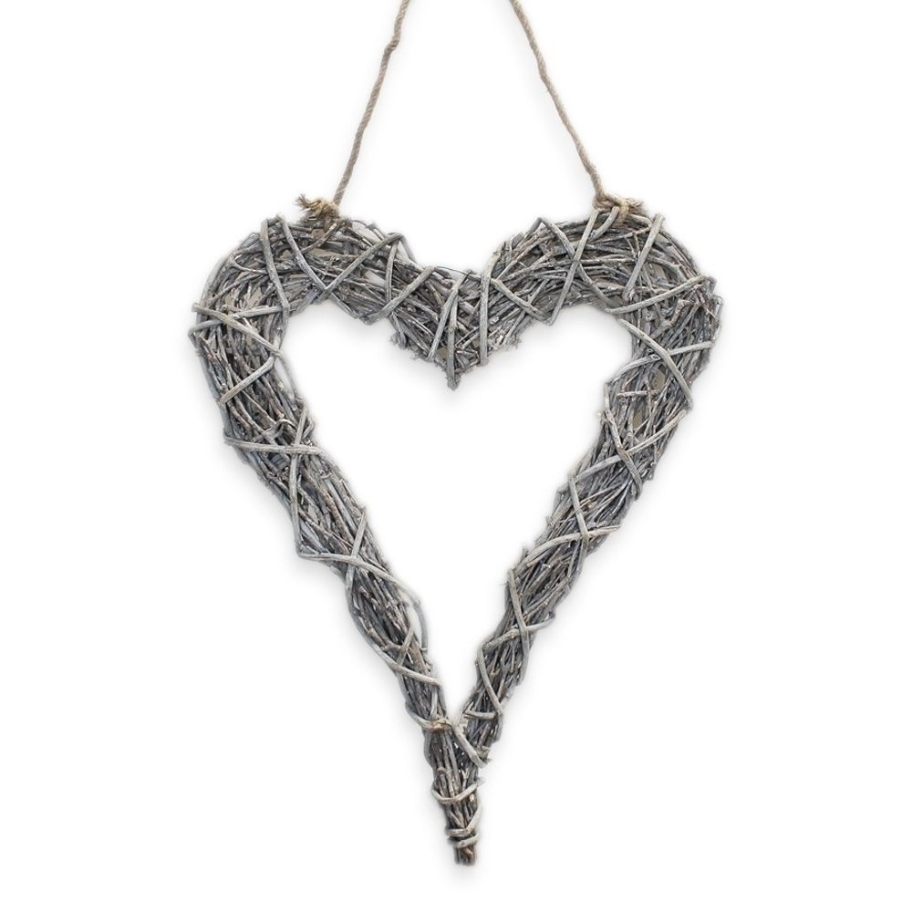 Srdce proutí závěs v.65x50cm bílá patina/natur