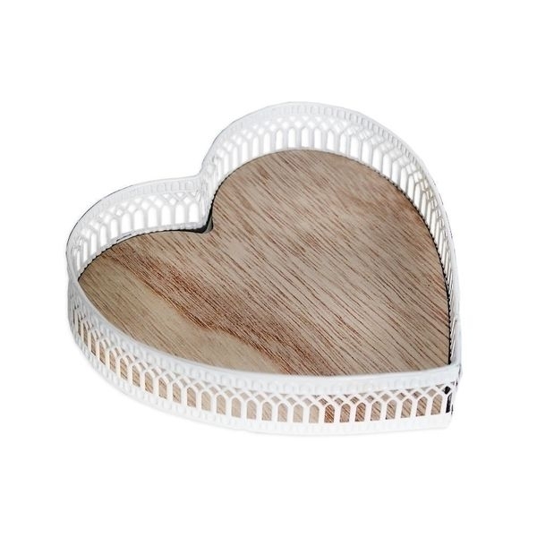 Tác dřevo/kov srdce pr.15x3,5cm bílá