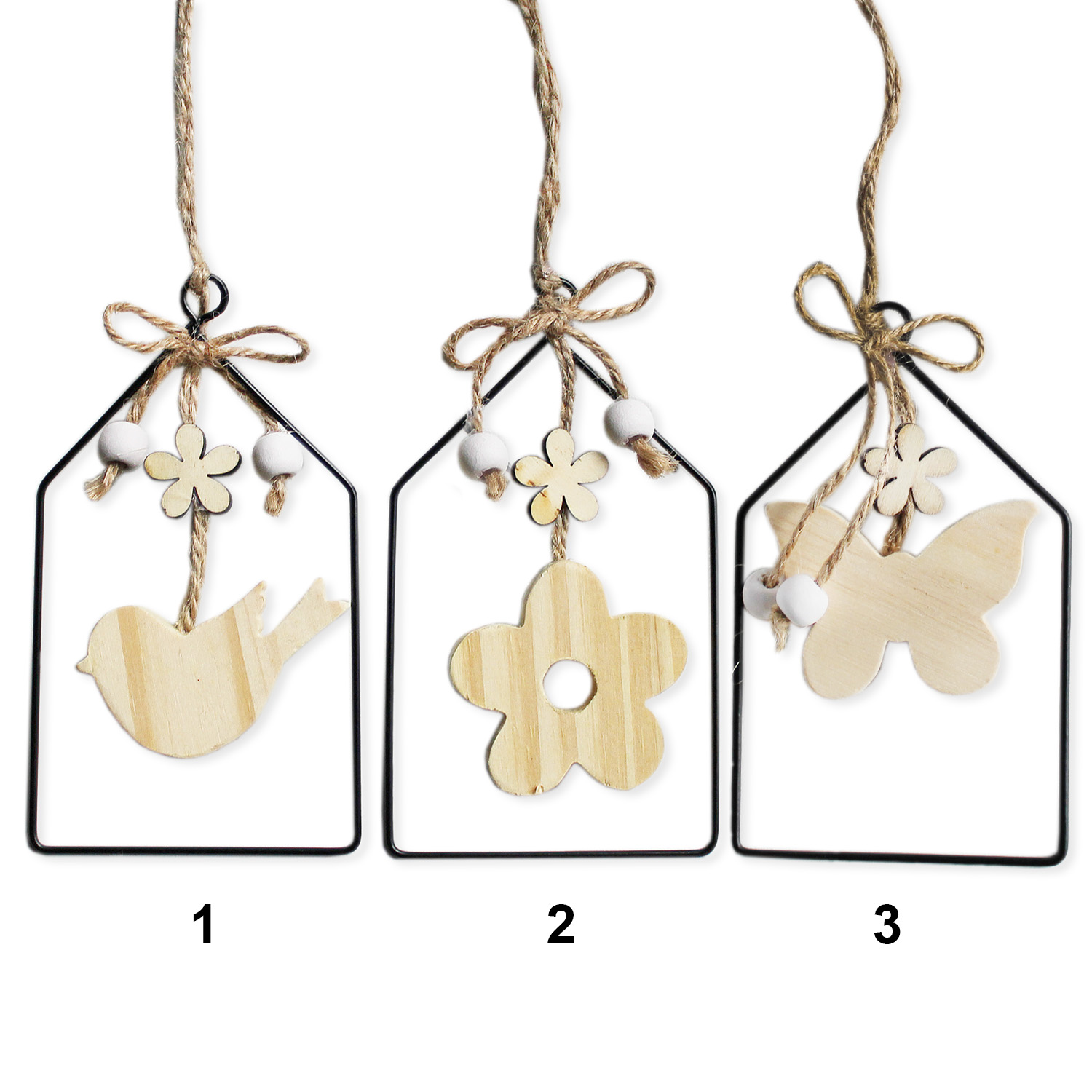 Závěs ptáček/kytka/motýl dřevo, kov v.12x7cm natural